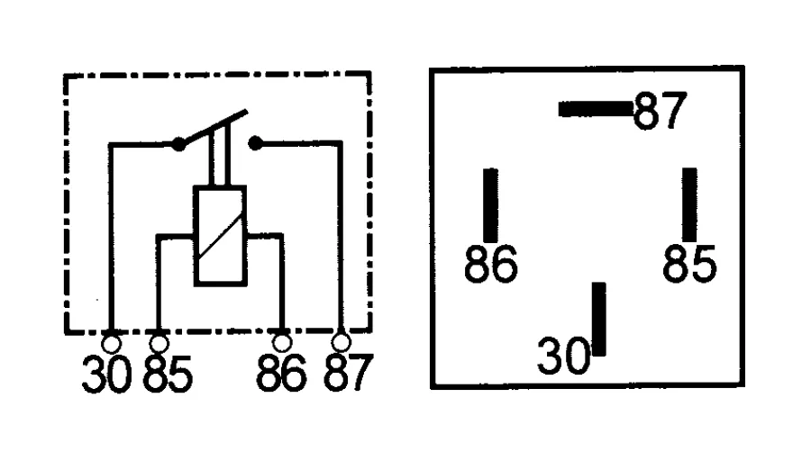 These relays are also available having an internal diode across the coil connections (85 & 86) to reduce the voltage spike across these terminals when the coil is de-energised. This is particularly important if the relay is being controlled by some form of electronic switch (such as a transistor) rather than by a normal mechanical switch, as the voltage spike can damaged sensitive electronics. The majority of applications will simply require the standard non diode relay (140201).